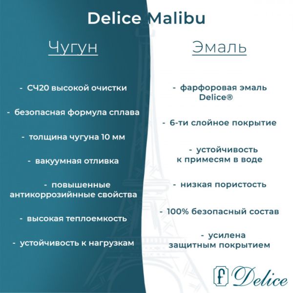 Ванна чугунная Delice Malibu DLR230630R 170х80 с отверстиями под ручки купить
