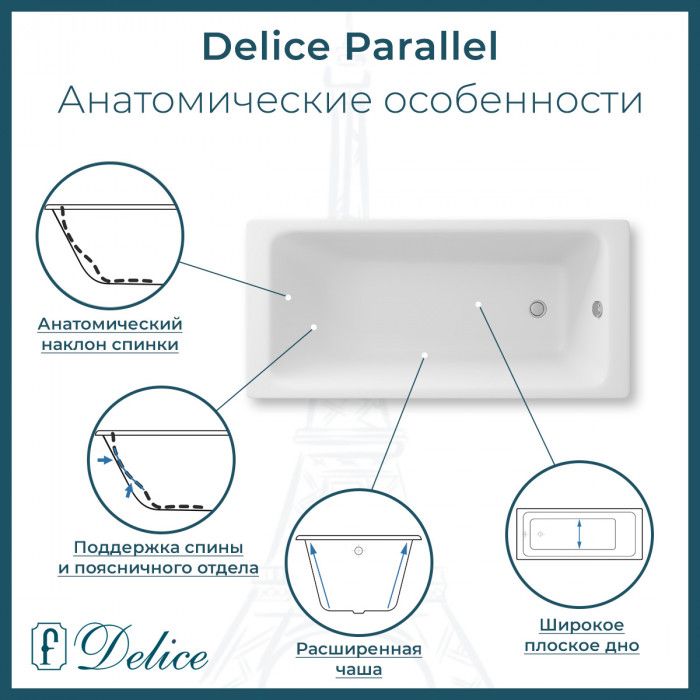 Ванна чугунная Delice Parallel DLR 220504R 160x70 с ручками купить