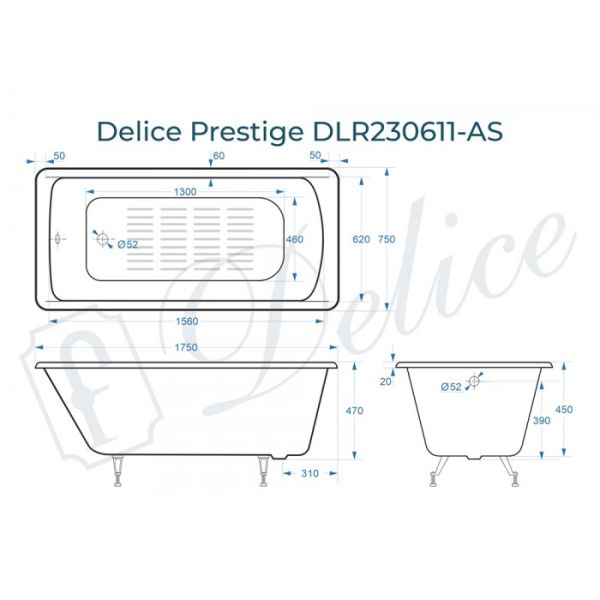 Ванна чугунная Delice Prestige DLR230611-AS 175x75 с антискользящим покрытием