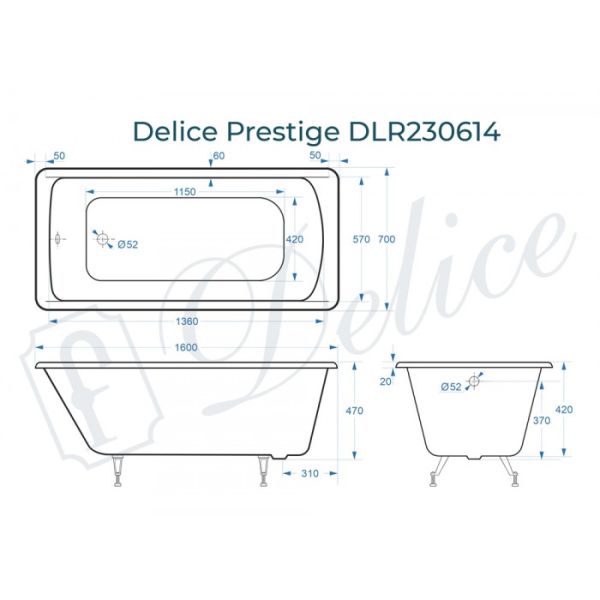 Ванна чугунная Delice Prestige DLR230614 160х70