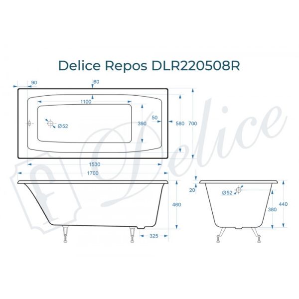 Ванна чугунная Delice Repos DLR 220508 170x70см белый