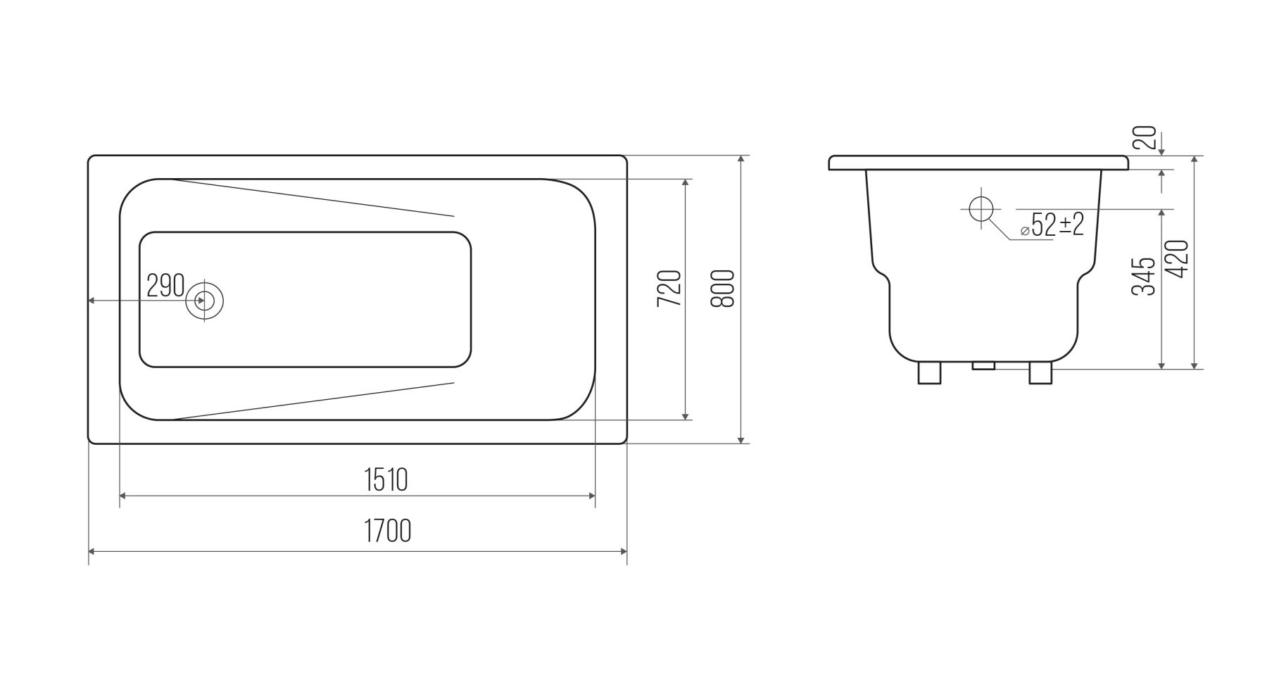 Ванна чугунная Goldman Art AT17080 170x80см с ножками