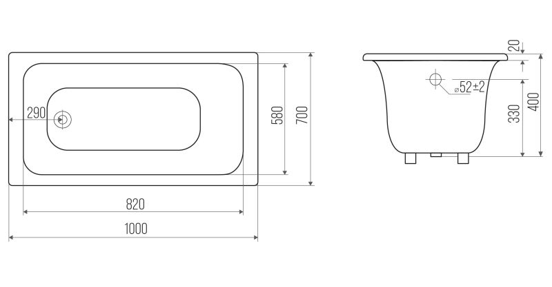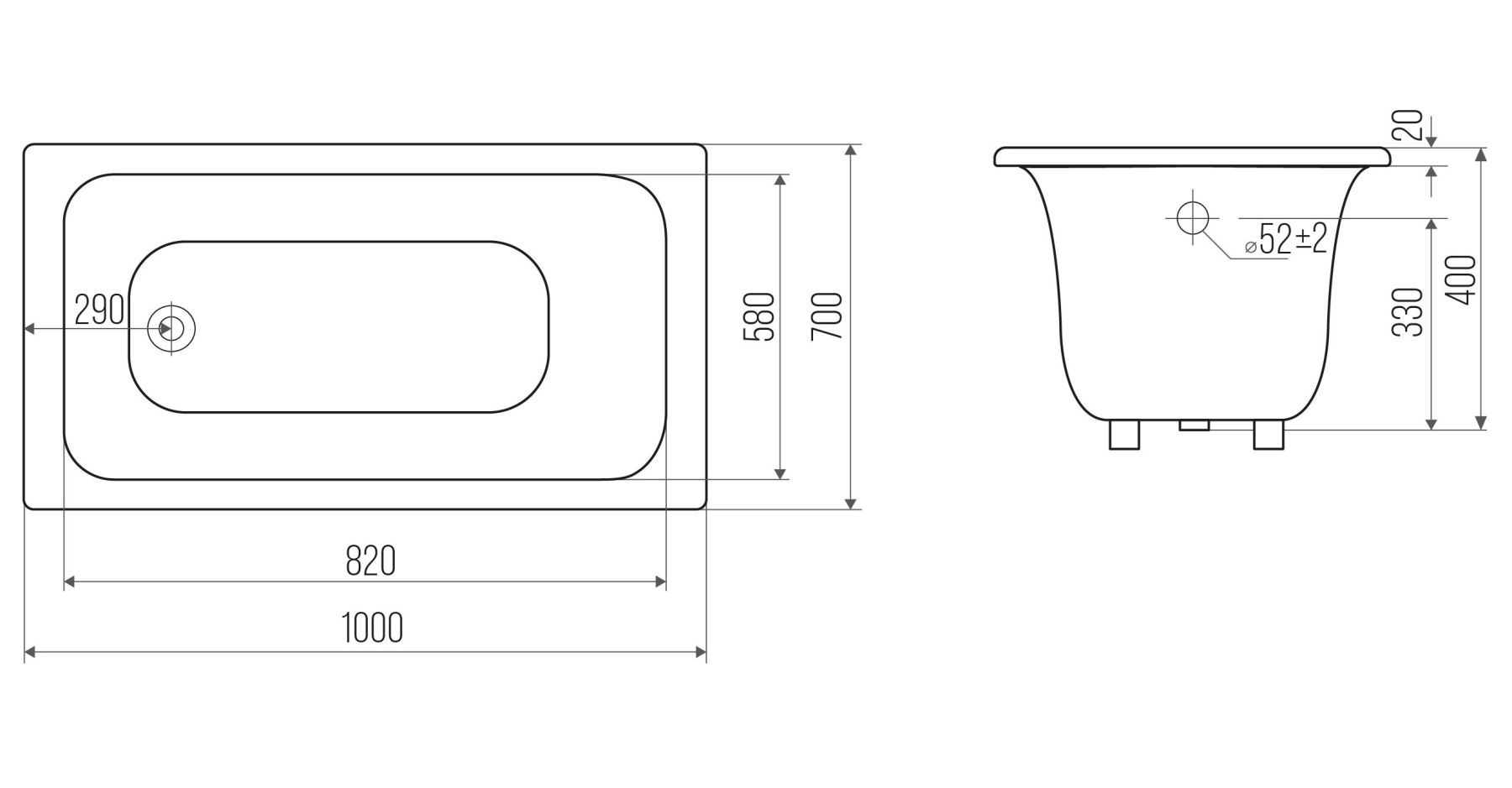 Ванна чугунная Goldman Classic CL10070 100x70см с ножками