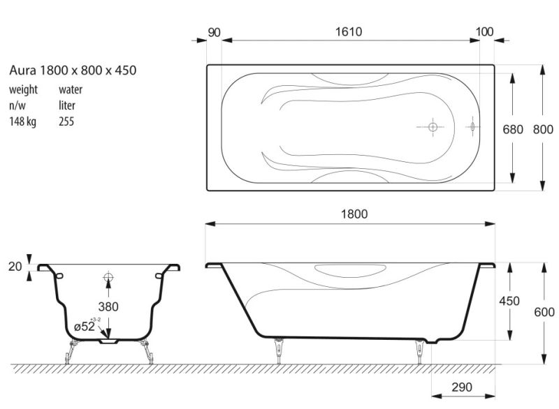 Общие характеристикиРазмер 180x80 Длина 180 см Ширина 80 см Глубина 45 см Высота на ножках 60 см Полезный объём 355 л Вес 148 кг Бренд Vinsent Veron 7 слёв титановой эмали класса 1А Цвет эмали белый Без антискользящего покрытия Диаметр слива Ø52 Расположение перелива стандартное