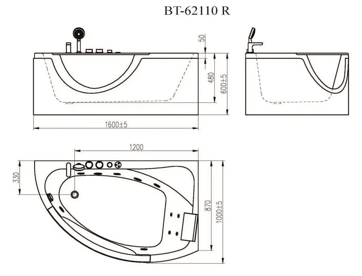 Ванна гидромассажная акриловая Orans BT-62110R 62110R 160x100 см
