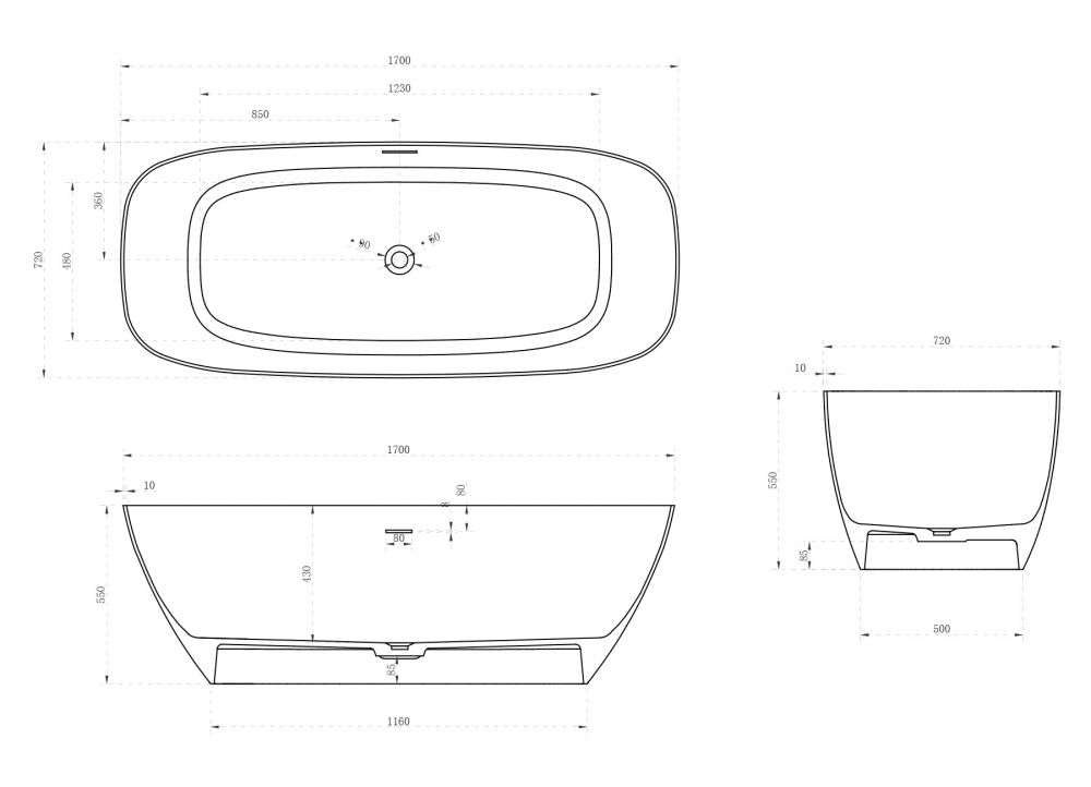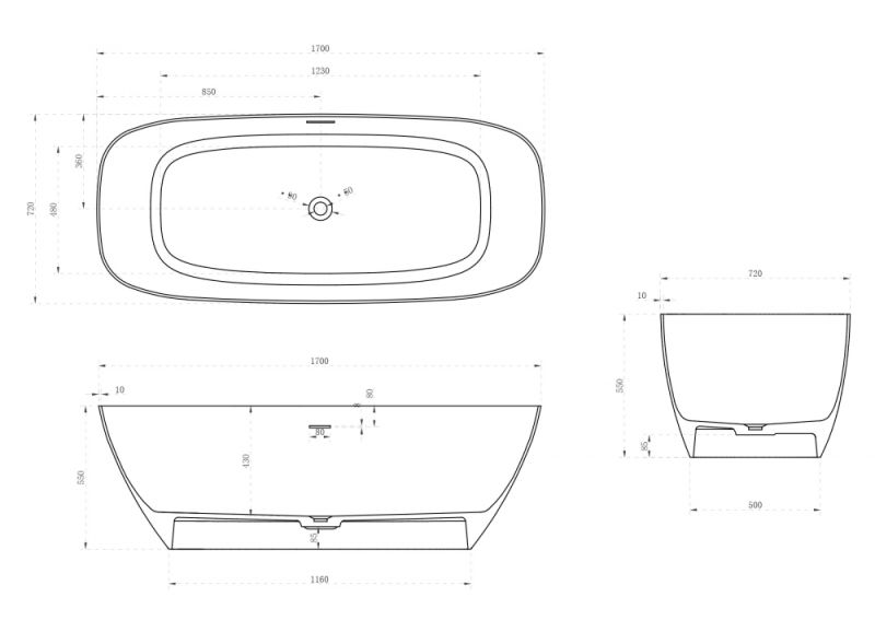 Ванна из искусственного камня ABBER Stein AS9612-1.7 170x72см белый матовый