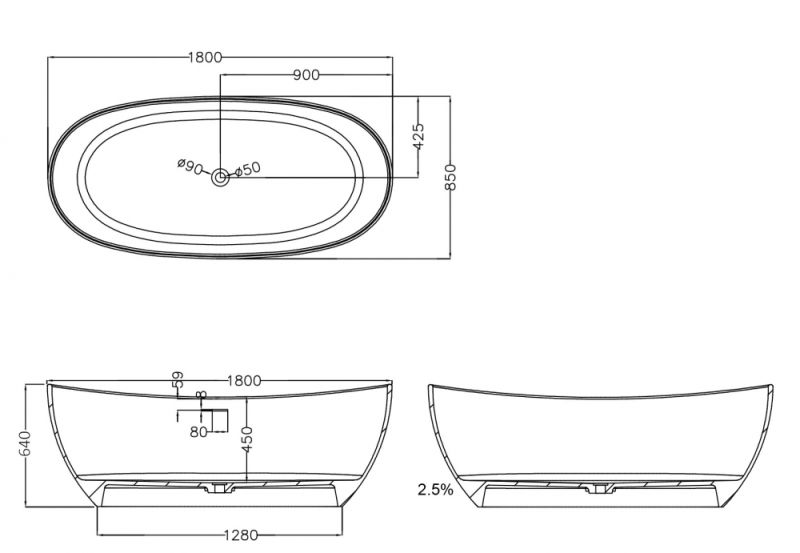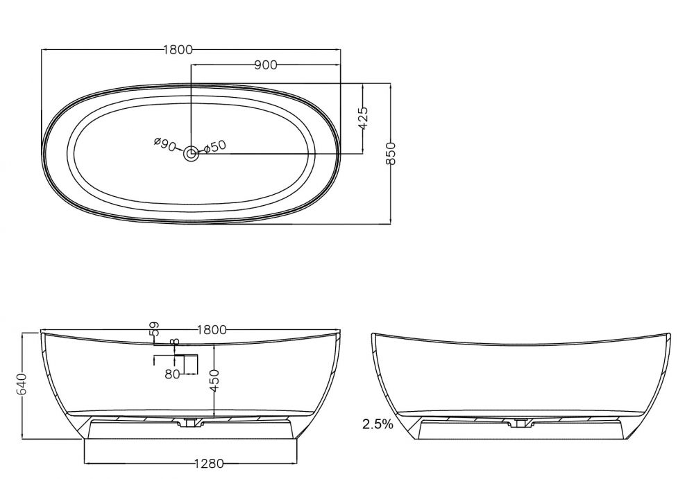 Ванна из искусственного камня ABBER Stein AS9615 180x85см белый матовый