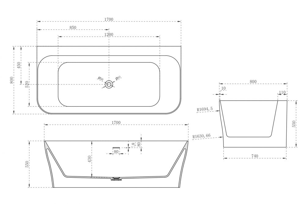 Ванна из искусственного камня ABBER Stein AS9616 170x80см белый матовый