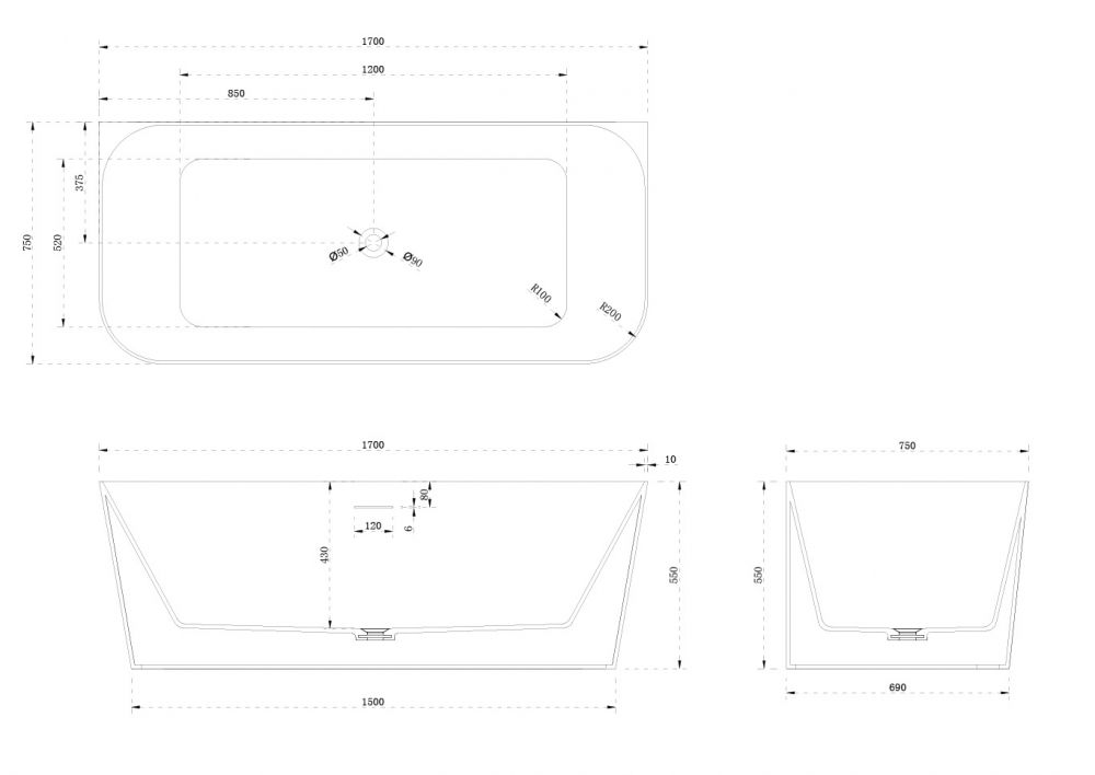 Ванна из искусственного камня ABBER Stein AS9617 170x75см белый матовый