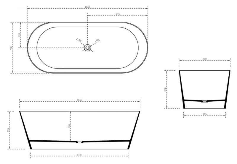 Ванна из искусственного камня ABBER Stein AS9622 165x70см белый матовый