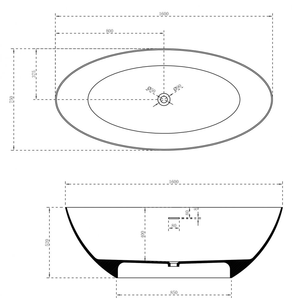 Ванна из искусственного камня ABBER Stein AS9625-1.6 160x75см белый матовый