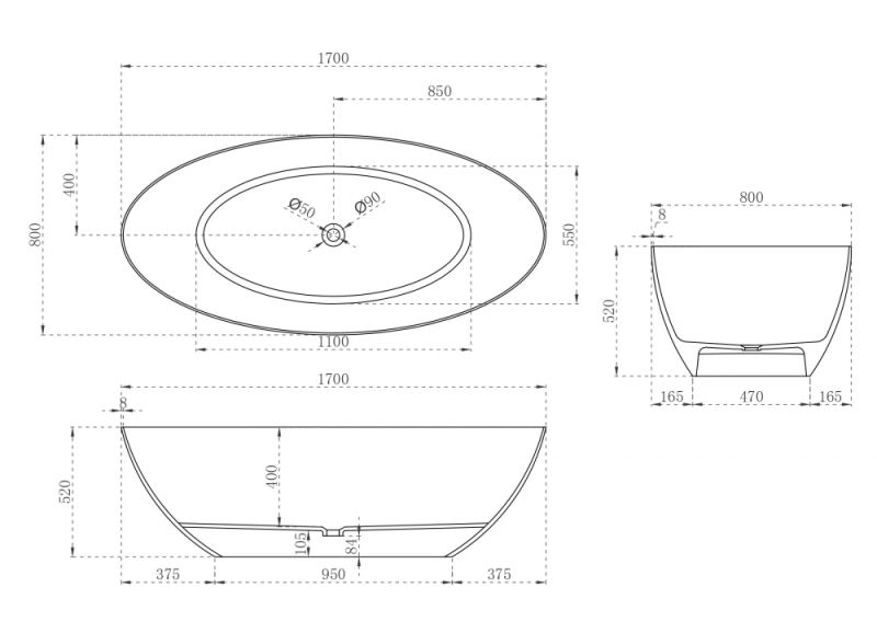 Ванна из искусственного камня ABBER Stein AS9625-1.7 170x80см белый матовый
