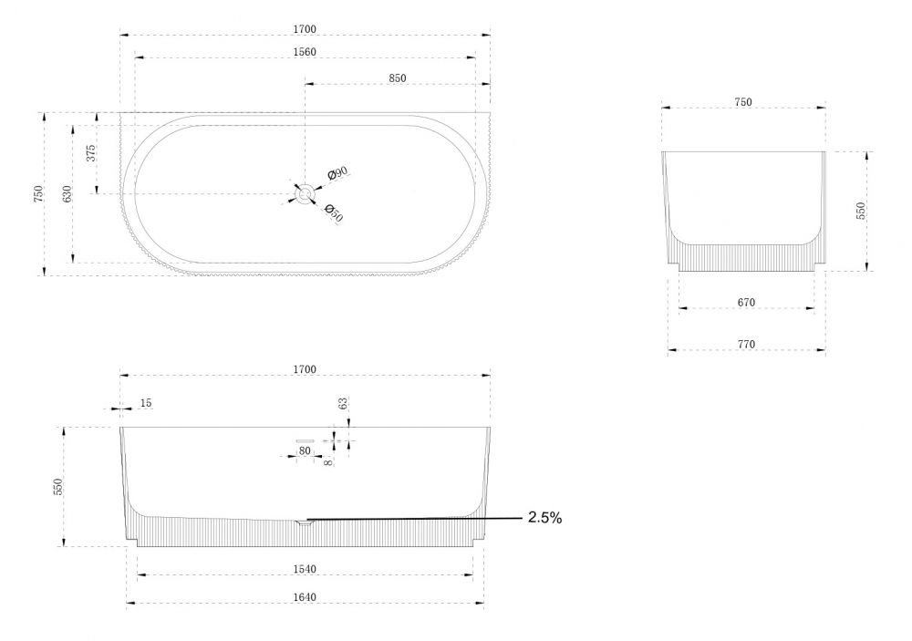 Ванна из искусственного камня ABBER Stein AS9630 170x75см белый матовый