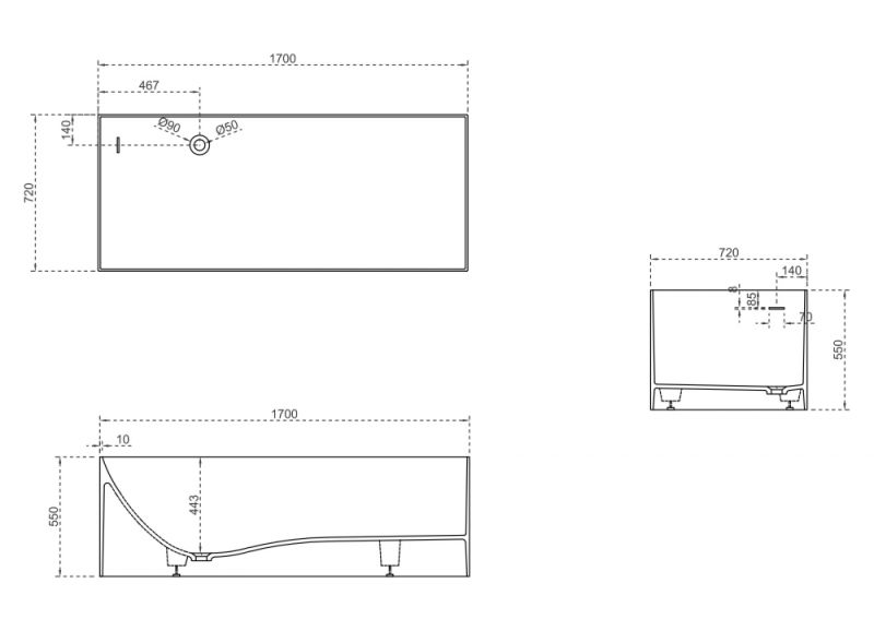 Ванна из искусственного камня ABBER Stein AS9640-1.7 170x72см белый матовый