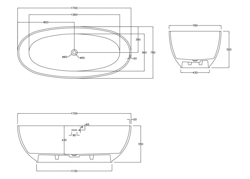 Ванна из искусственного камня ABBER Stein AS9641-1.7 170x78см белый матовый