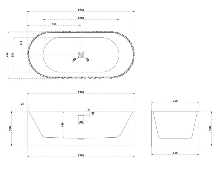 Ванна из искусственного камня ABBER Stein AS9653 170x75см белый матовый