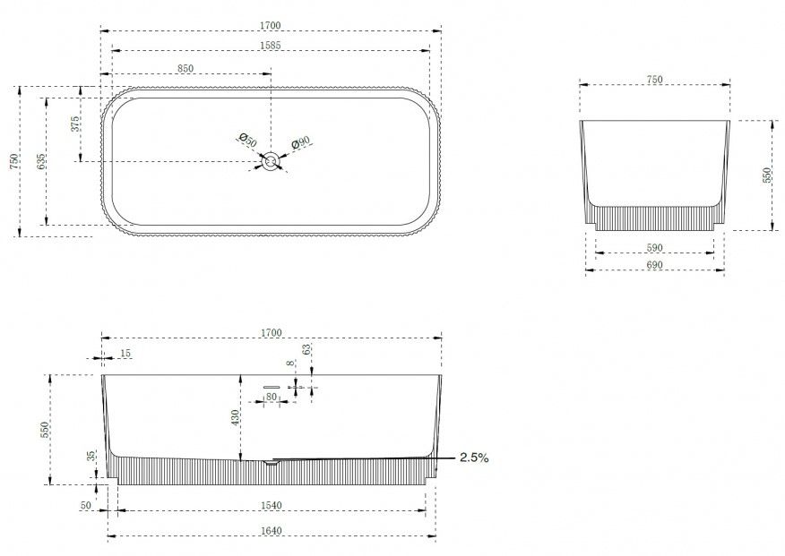 Ванна из искусственного камня ABBER Stein AS9663 170x75см белый матовый