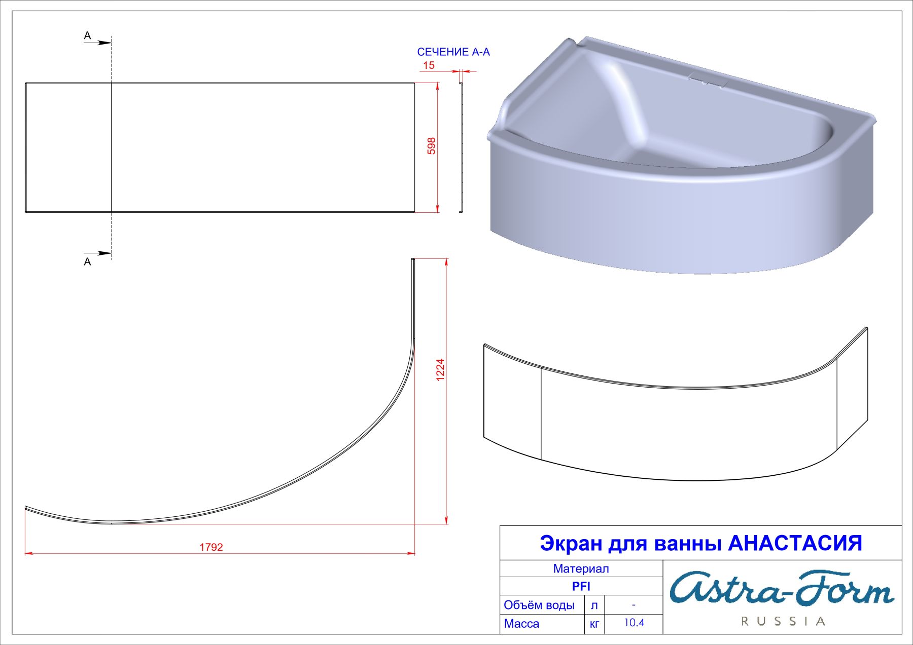 Ванна из искусственного камня Astra-Form Анастасия 01010025 левая 182x125 см белый глянец