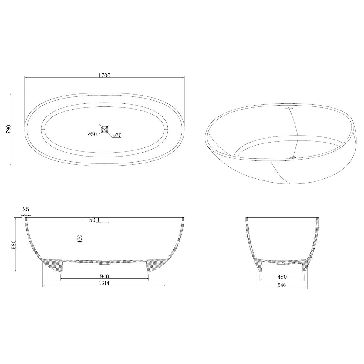 Ванна из искусственного камня Azario CHARTERS CHA17079S свободностоящая 1700х790х580