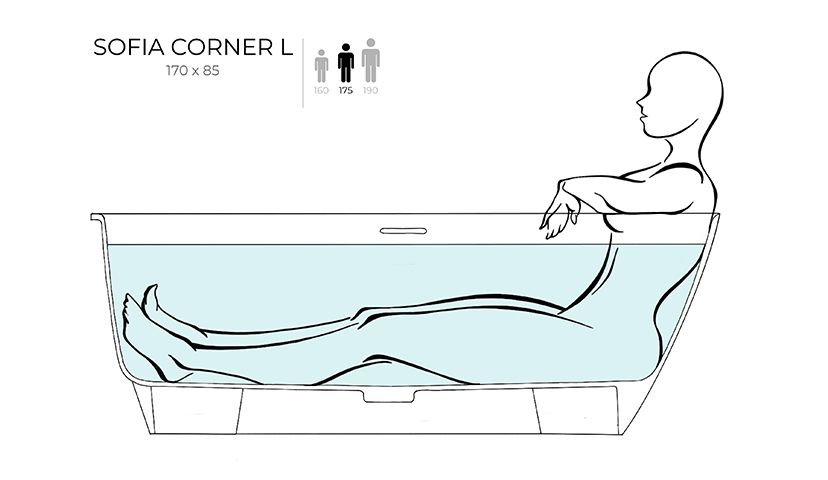 Угловая модификация популярной модели SOFIA оптимизирует пространство ванной комнаты. Купаться и принимать душ одновременно — нет ничего проще.
