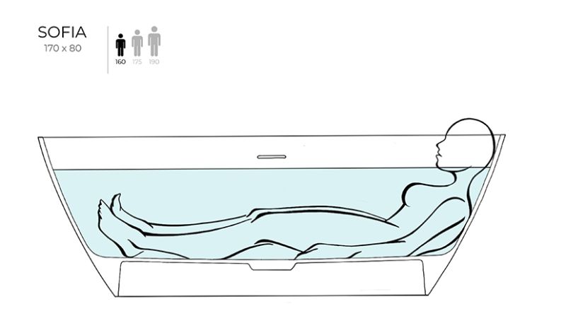 Ванна SOFIA хорошо смотрится как у стены, так и в центре комнаты — особенно в сочетании с удобной раковиной современного силуэта из этой же серии. Преимущества
