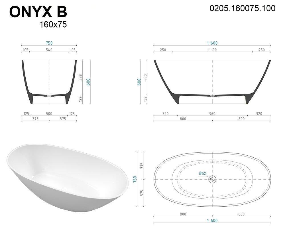 Для создания ванны ONYX B используются материалы премиум класса, качество которых соответствует высочайшим стандартам.