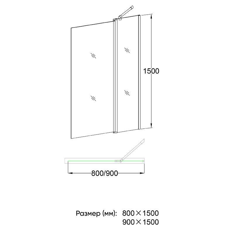 Неподвижная панель крепится пристенной штангой из нержавеющей стали