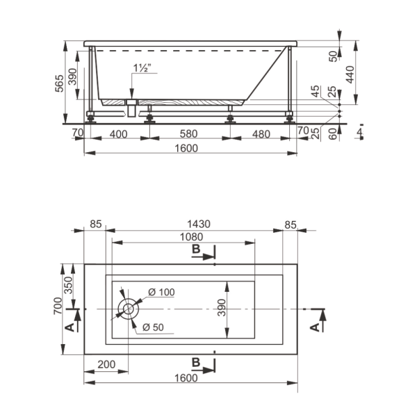 Veedi Ванна акриловая Anica 160х70 с каркасом