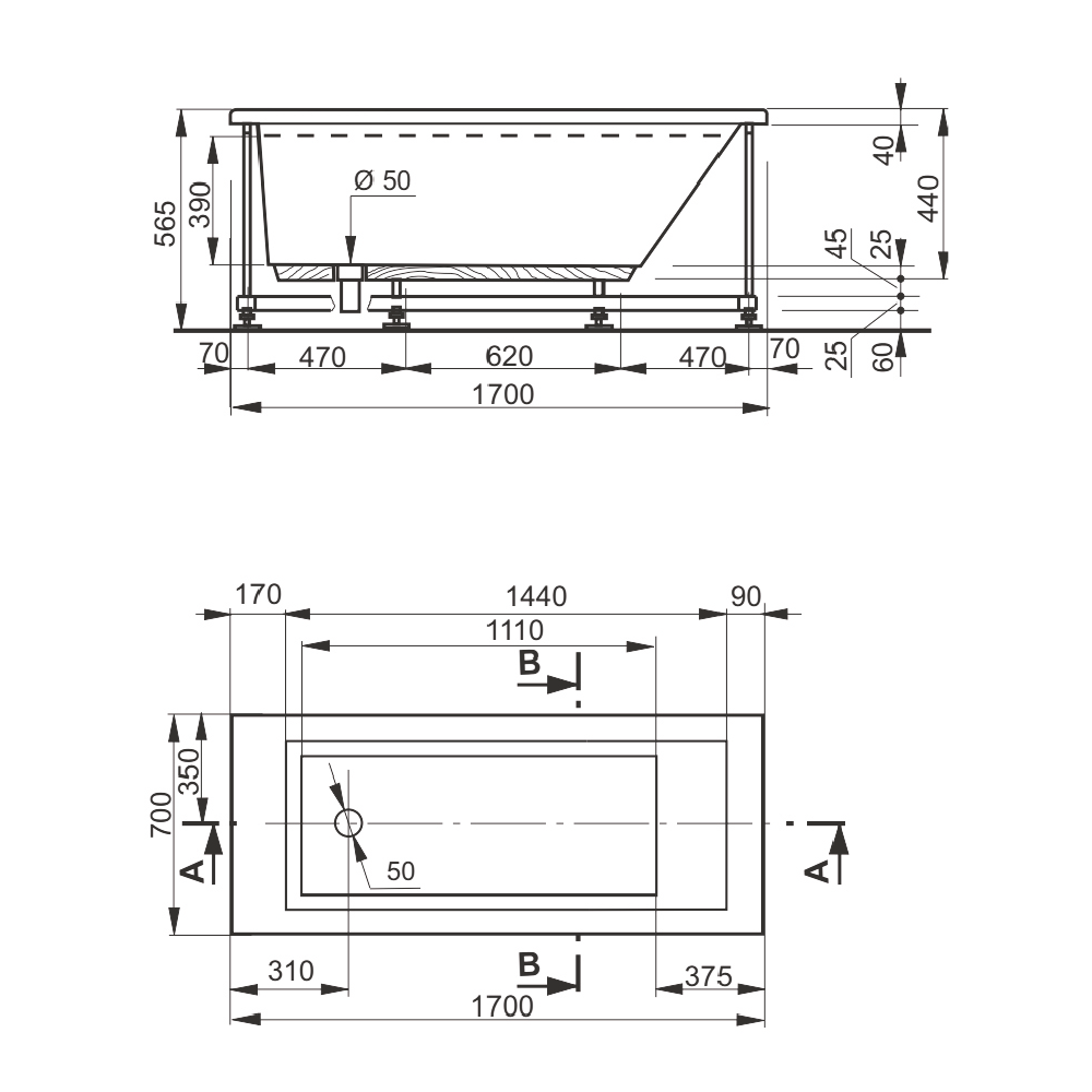 Veedi Ванна акриловая Anica 170х70 с каркасом