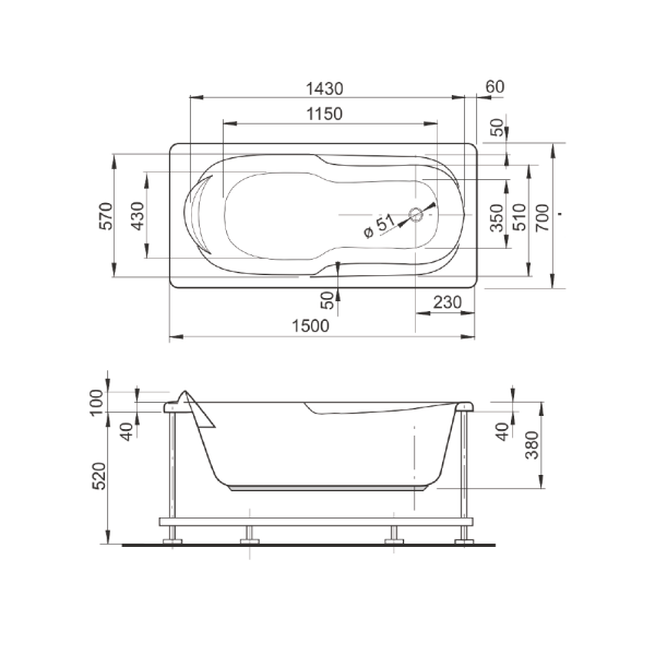 Veedi Ванна акриловая Iva 150х70 с каркасом