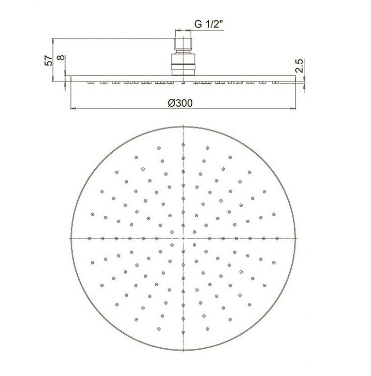 Размер верхнего душа, см:30
