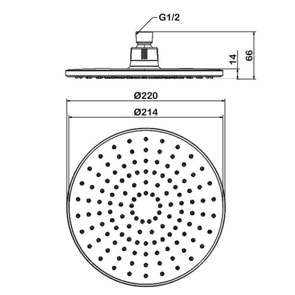 Размер верхнего душа, см:22