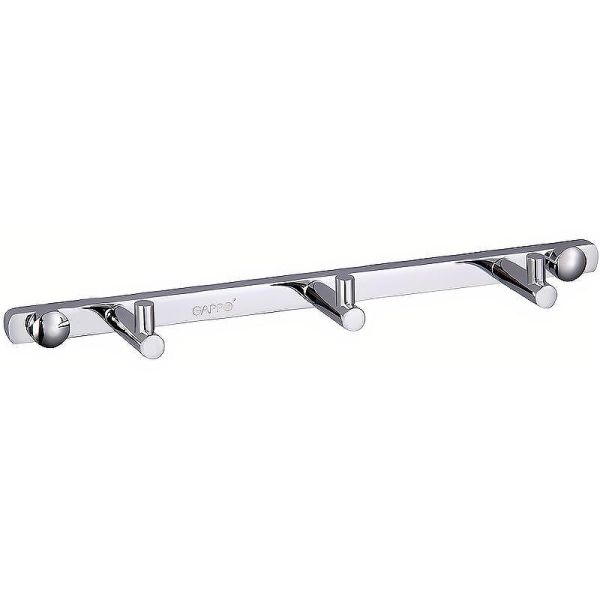 Крючки расположены на оптимальном расстоянии друг от друга для удобного использования. Устанавливается на стену посредством шурупов или саморезов. Стойкое хромированное покрытие защищает изделие от влаги и придает ему блестящий вид.
