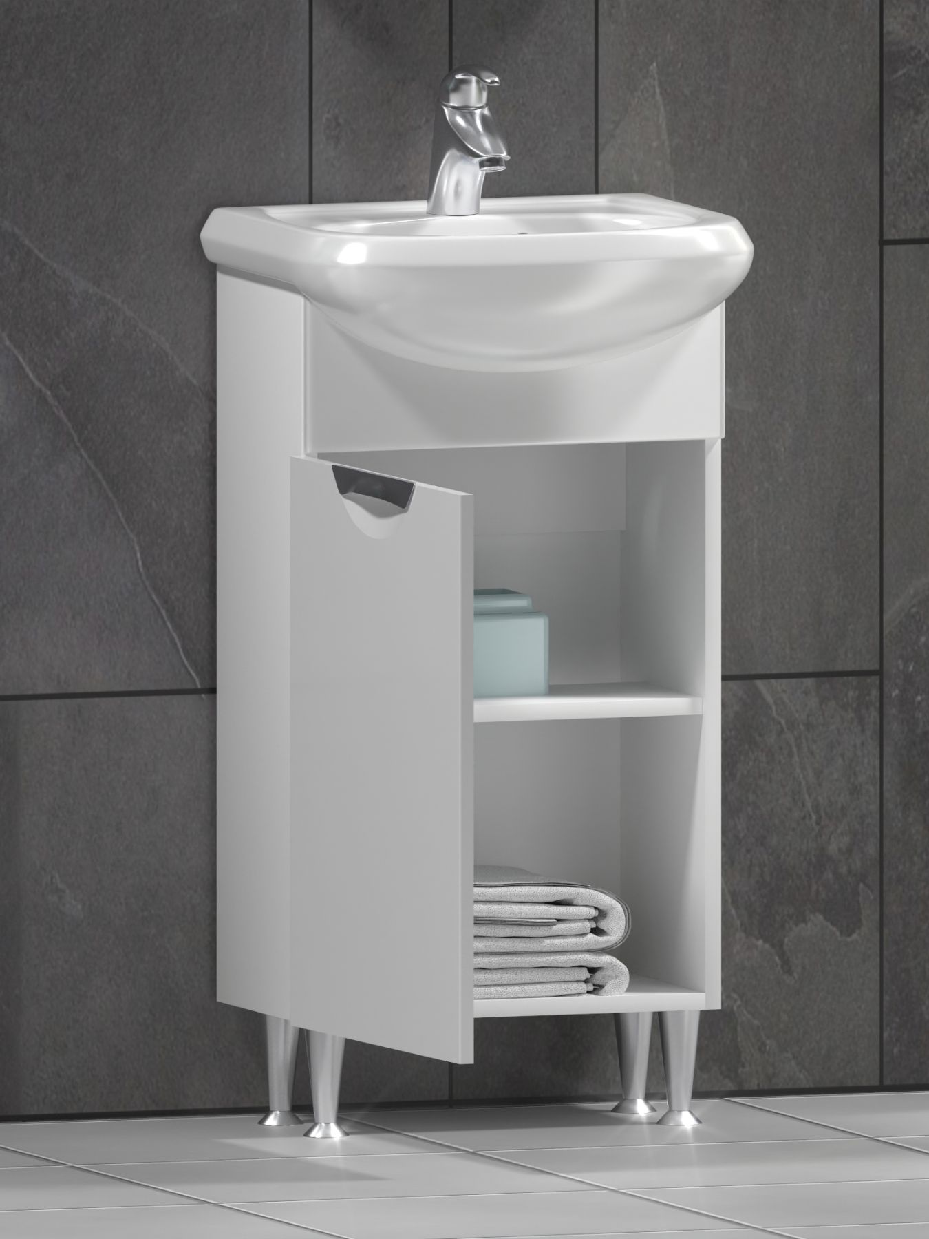 1 дверца; 1 полка ЛДСП; ручка металлическая хромированная; опоры конус регулируемые.