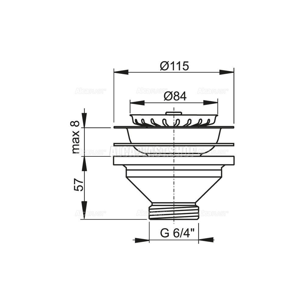 Водослив сифона для мойки AlcaPlast 6/4" с нержавеющей рeшeткой ?115 A37