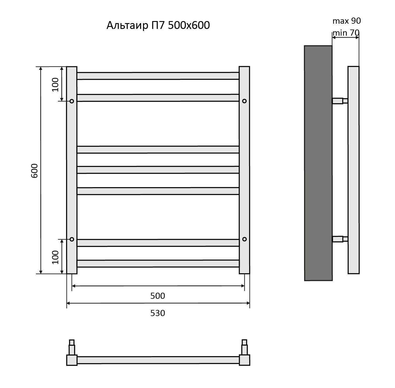 Полотенцесушитель водяной Aquatek (Акватек) Альтаир П7 500х600 мм, подключение нижнее/диагональное, сверхпрочная пищевая нержавеющая сталь AISI 304L, гарантия 10 летХарактеристики:30х30/20х20, без фитинговКомплектация:полотенцесушитель;