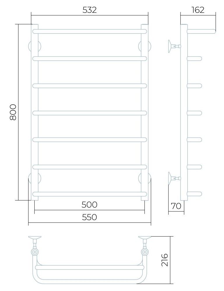Водяной полотенцесушитель Larusso Стандарт П7 с полкой 50x80см хром 4670078535313