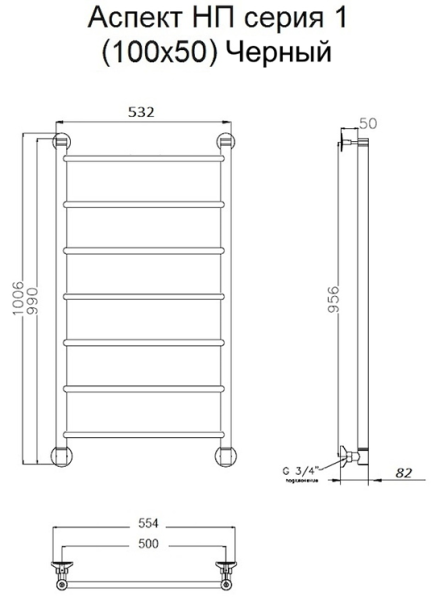 Водяной полотенцесушитель Тругор Аспект НП 1 100x50см чёрный Аспект1/нп10050черный