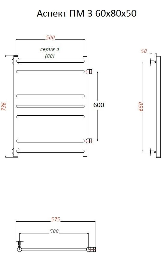 Водяной полотенцесушитель Тругор Аспект ПМ 3 60x80x50см хром Аспект3/ПМ608050
