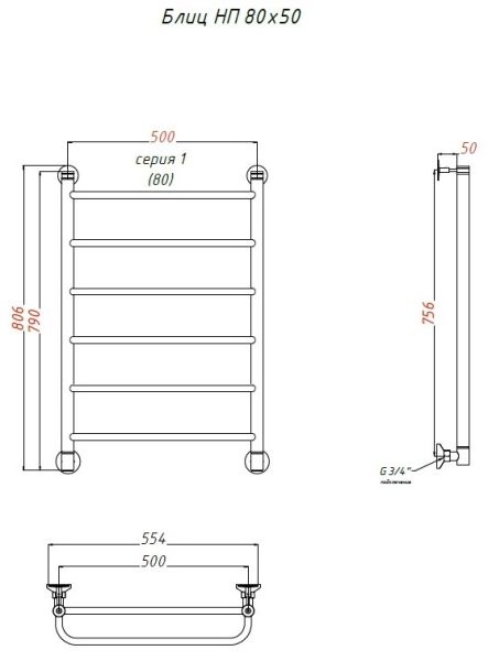 Водяной полотенцесушитель Тругор Блиц НП 80x50см хром Блиц/НП8050
