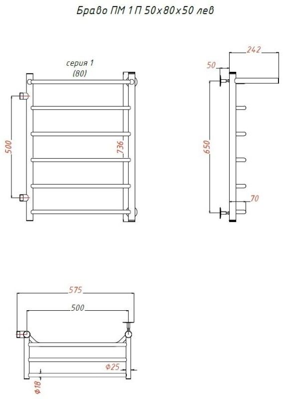 Водяной полотенцесушитель Тругор Браво ПМ 1 П 50x80x50см с полкой левый хром Браво1/ПМ508050Плев