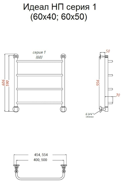Водяной полотенцесушитель Тругор Идеал НП 1 60x50см хром Идеал1/нп6050