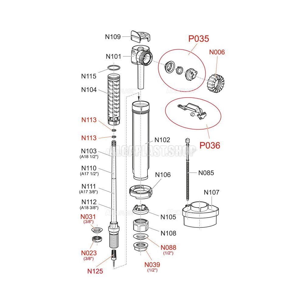 Впускной механизм AlcaPlast с нижней подводкой и металлической резьбой A18-3/8"