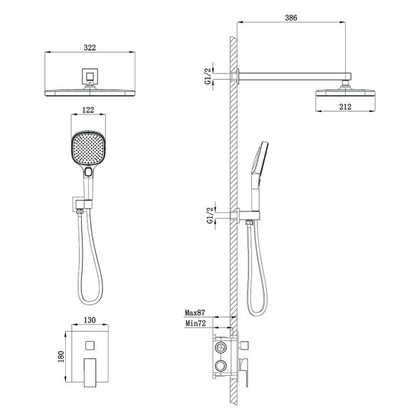 Встраиваемая душевая система AVELLA, Чёрный матовый