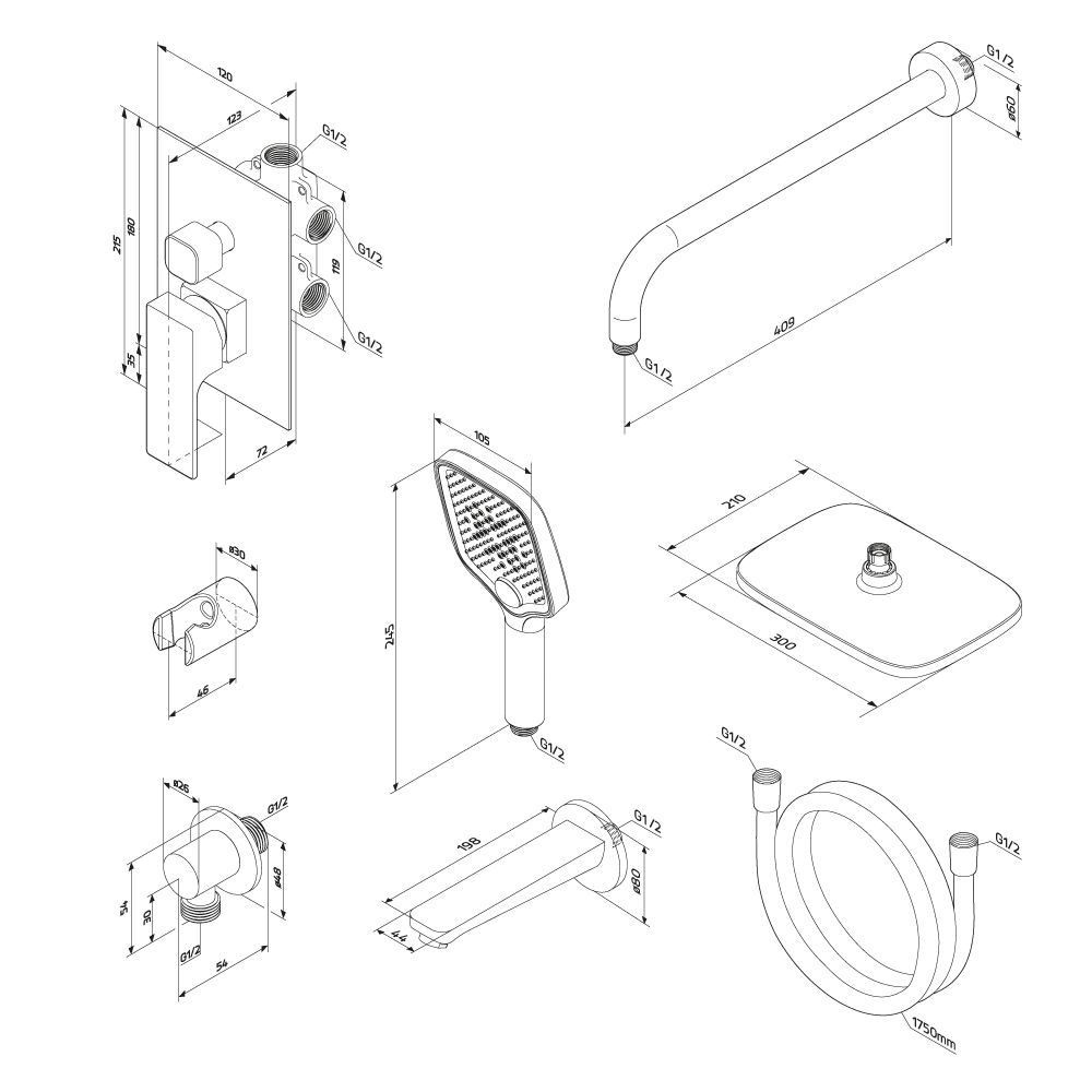 Встраиваемая душевая система Damixa Gala 953510300 черный