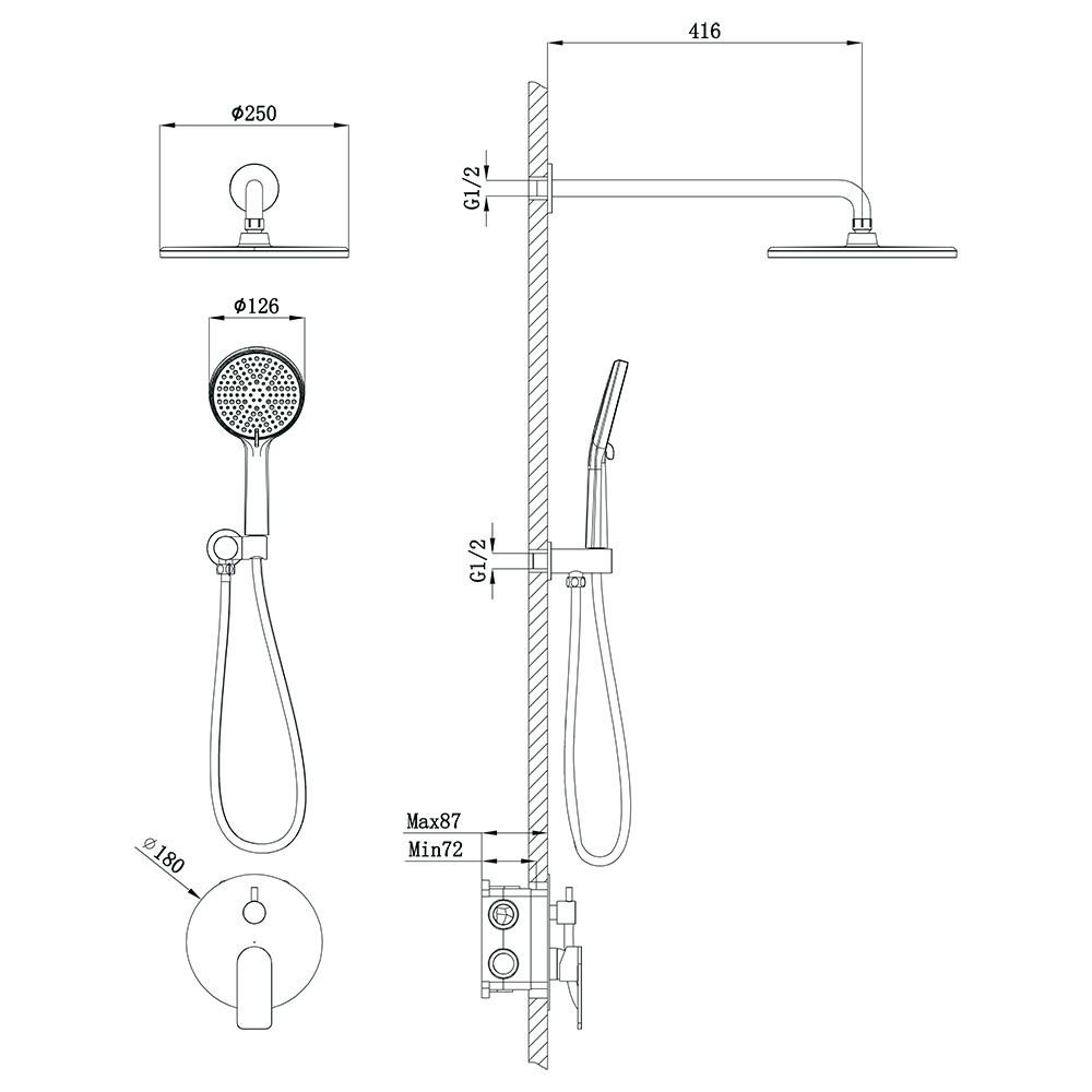Встраиваемая душевая система LICATA, Графит брашинг