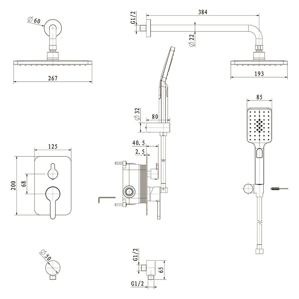 Встраиваемая душевая система VERONA, Золото брашинг
