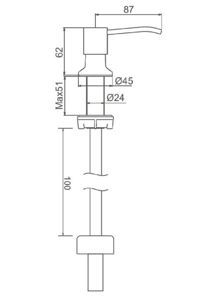 Встраиваемый дозатор для кухонной мойки Splenka S710.02.06 с удлинительной трубкой 100мл чёрный