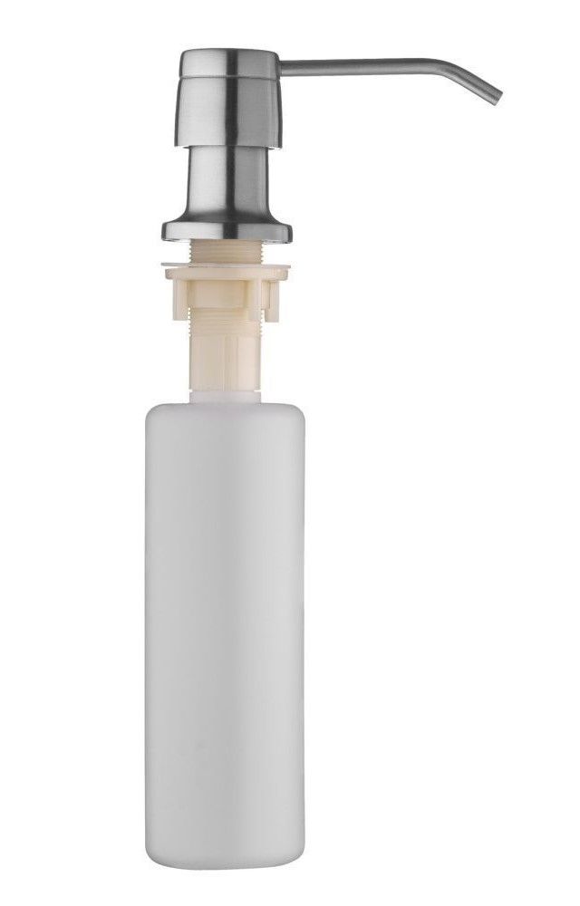 Встраиваемый дозатор для мыла нержавеющая сталь, ABS - пластик.Максимальная толщина столешницы 37 ммЦвет: нержавеющая сталь.Объем: 330 мл