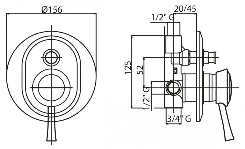 Встраиваемый однорычажный смеситель для душа с переключателем, бронза Cezares GIUBILEO-VDIM-02 купить